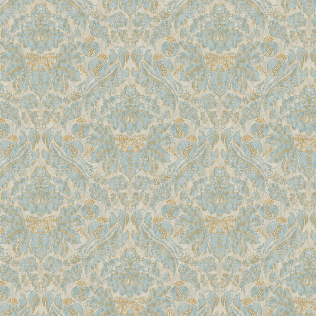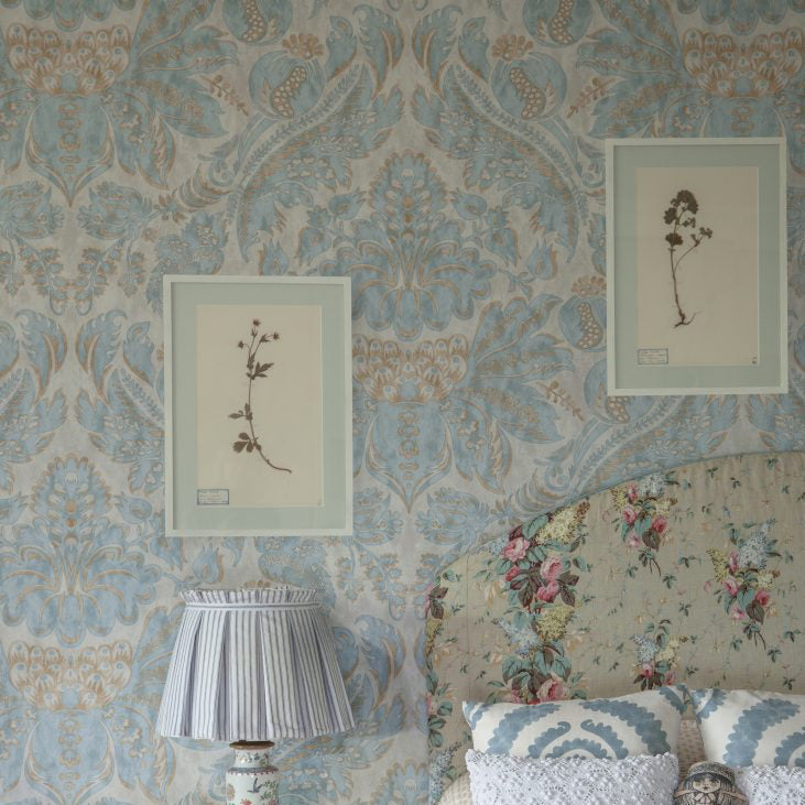 Inspired by 19th-century silk damask curtains discovered in a Mallorcan castle, this sumptuous print bursts with pattern and intricate details.
